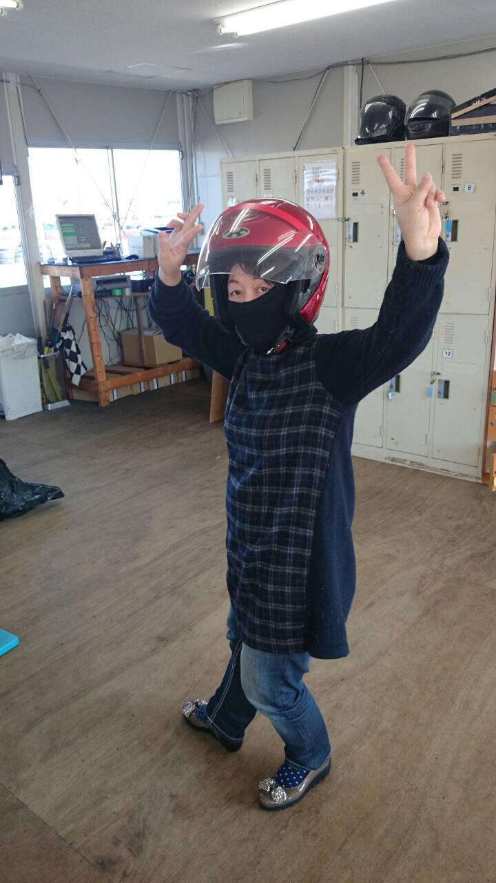 レーシングスーツを着るのかと思いきや意外と軽装です。