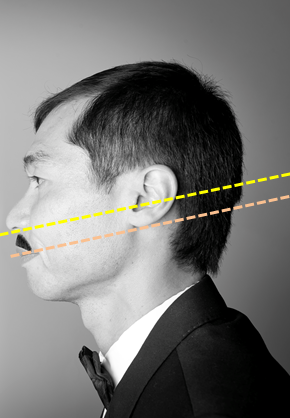 耳珠(耳の穴の前のふくらみ)と鼻翼下縁(鼻の付け根)を結ぶ平面が